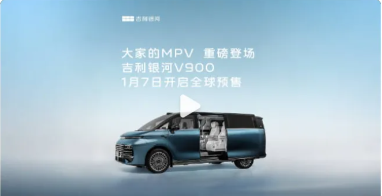 1月4日,吉利银河官方宣布,旗下的全新中大型MPV车型“银河V900”将于1月7日正式开启全球预售。
